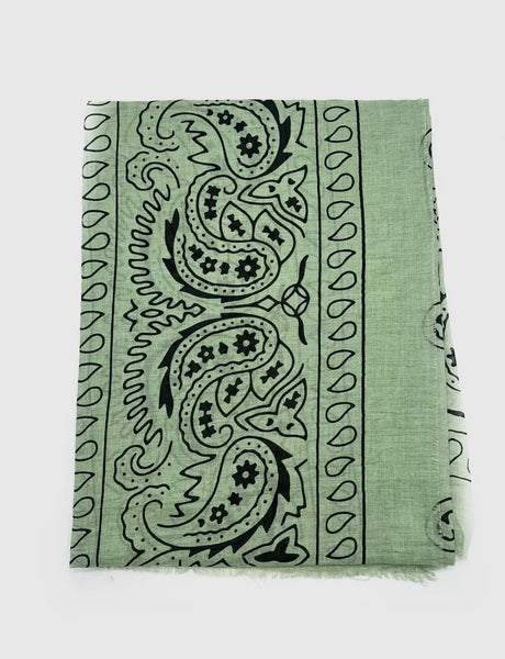 Large square scarf with bandana print, cotton lightweight fabric, made in France, perfect for any time of year. Approx 51” square