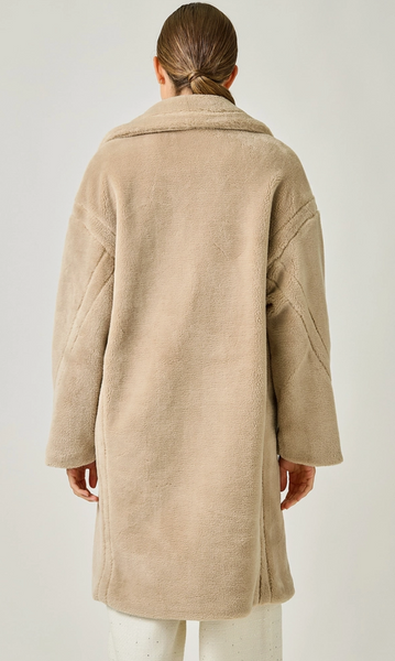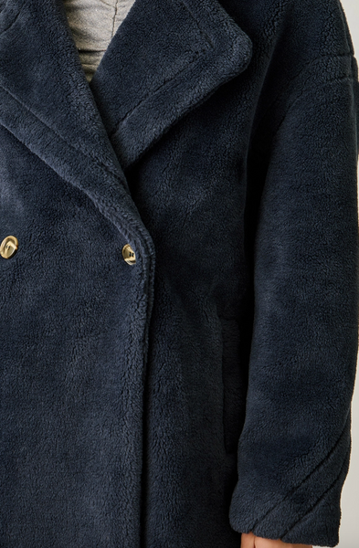 These coats are soo cute! So soft, and sure to keep you warm! Double button closure, lining in sleeves and sides, collared with side pockets. Knee length.