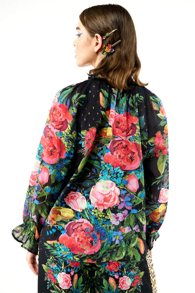Beautiful floral blouse! Beaded Tassels neck string puff sleeve glittered floral print blouse.